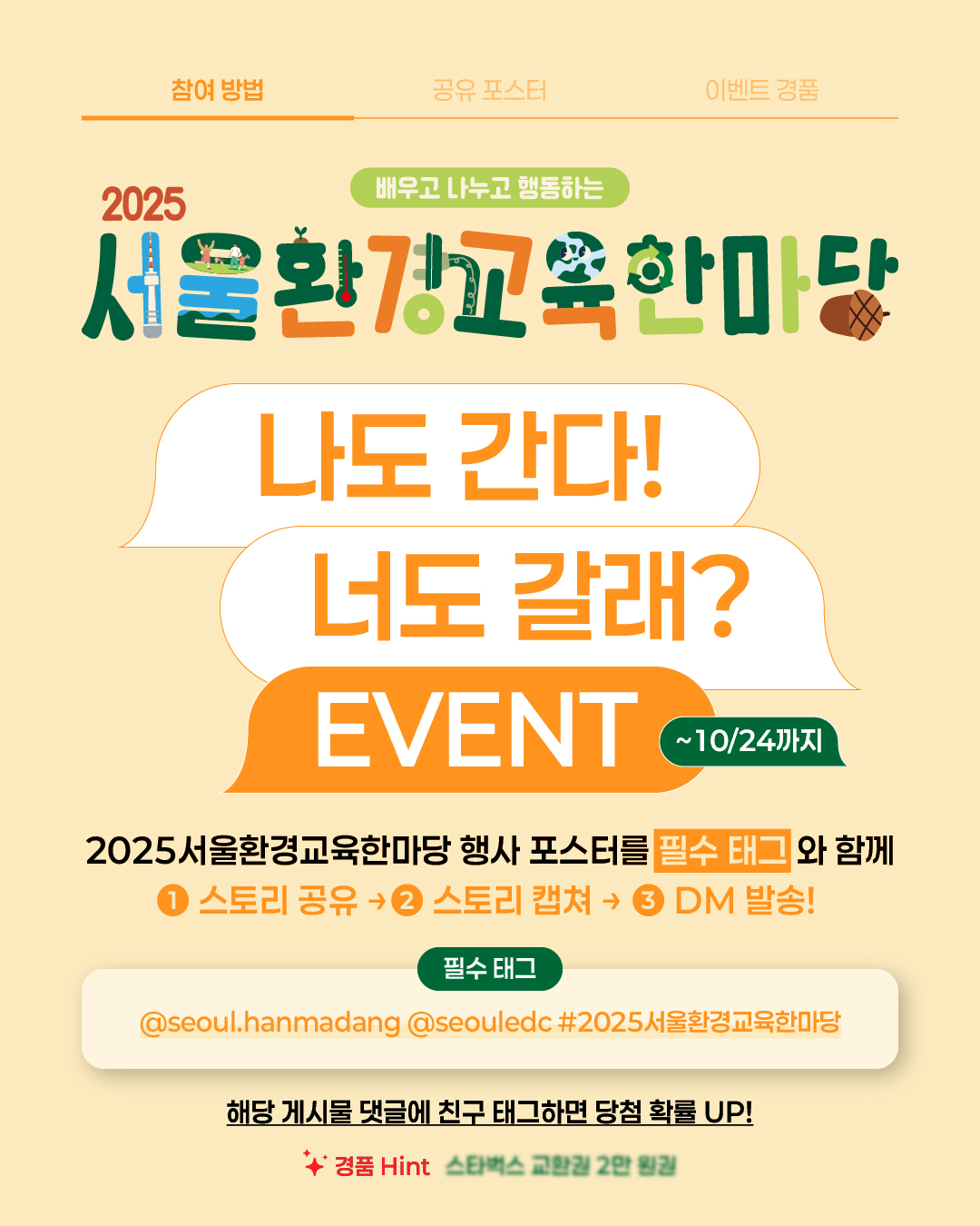 [2025 서울환경교육한마당] ”나도 간다! 너도 갈래?” 이벤트 참여하고 선물받자!