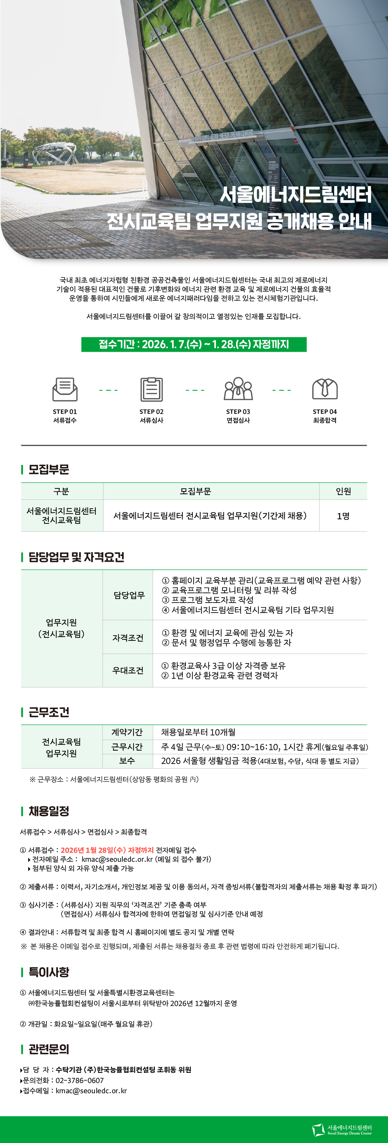 [채용] 2026년 서울에너지드림센터 전시교육팀 업무지원 공개채용 안내