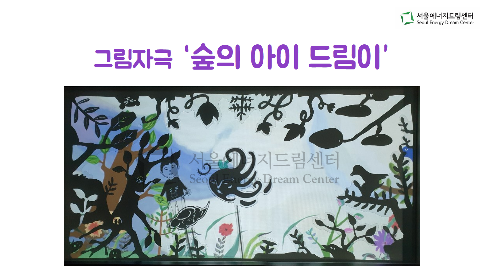 <숲의 아이 드림이>는 기후변화로 급격하게 변하는 자연 현상과 자연을 대하는 태도를 유아의 눈높이에 맞춘 그림자극으로 설명하고 있습니다.