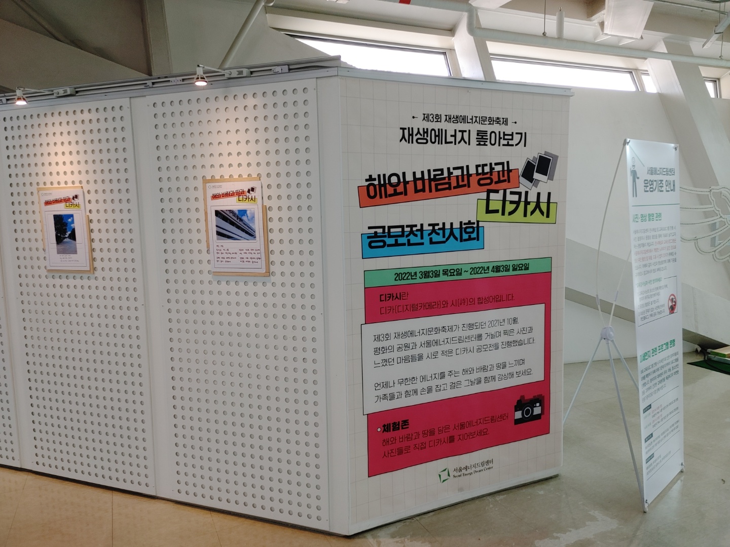 ○ 주제: 카메라로 찍은 서울에너지드림센터와 평화의 공원 모습과 그때의 마음들을 시로 적은 디카시 공모전 전시회