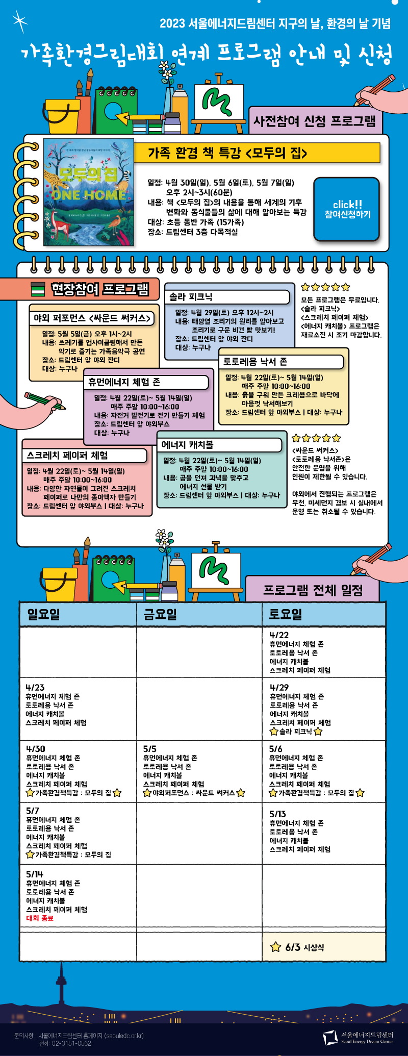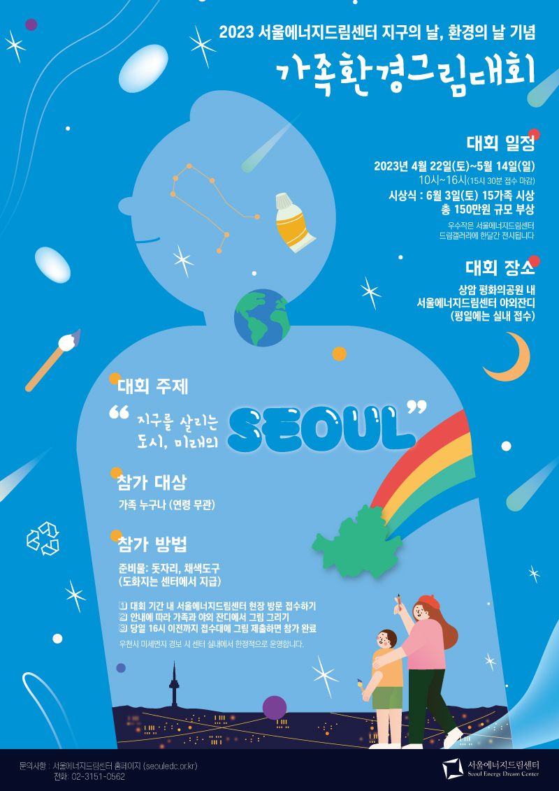 4월 22일 토요일 ~ 5월 14일 일요일까지 서울에너지드림센터에서 환경의 가치와 가족의 화합이 함께 빛나는 환경문화축제, <가족환경그림대회>가 진행됩니다.