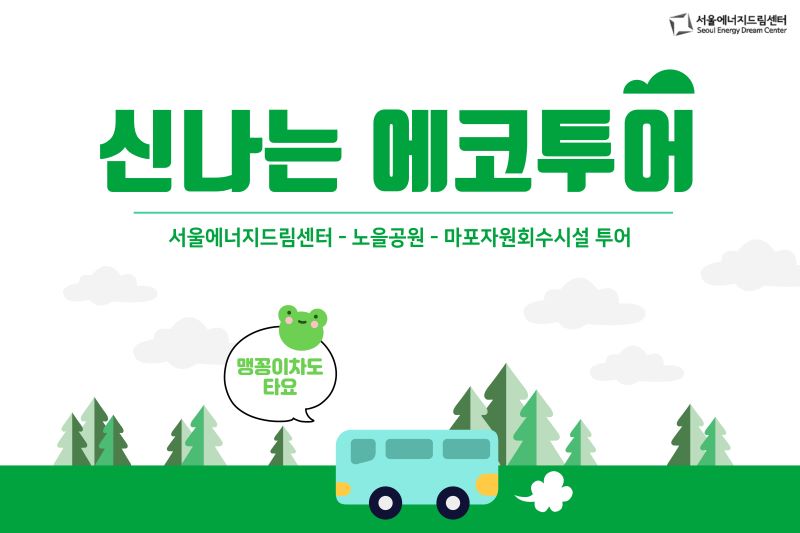 신나는 에코투어는 서울에너지드림센터에서 전시 해설을 듣고, 노을공원으로 이동하여 맹꽁이 차를 탄 뒤 마포자원회수시설을 탐방하여 생태 환경의 의미를 알아보는 프로그램 입니다.